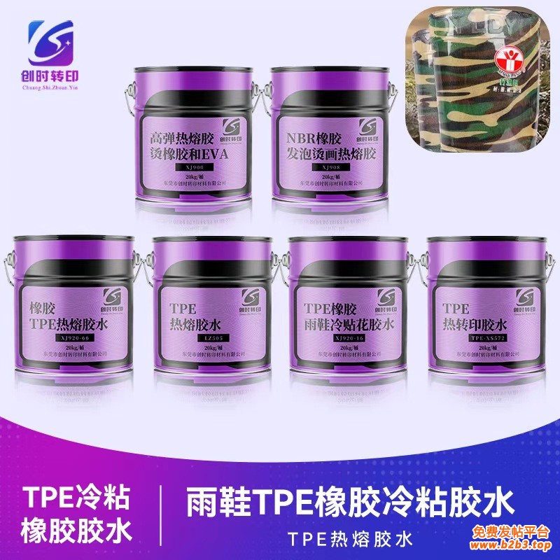 TPE热熔胶水 橡胶TPE冷粘丝印胶水 TPE橡胶雨鞋冷贴花胶水 TPE热转印胶水 橡胶TPE冷粘丝印胶水 成品鞋TPE橡胶贴花胶水