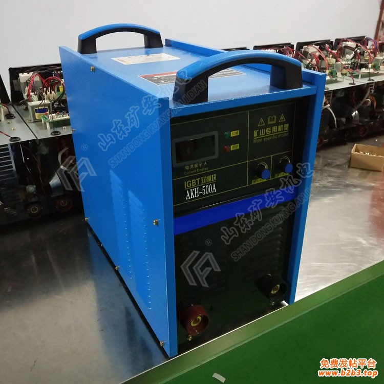 矿用逆变直流电焊机输入三相380V或三相660V、50---60HZ的交流电,经由焊机前面板上的电源开关控制的交流变压器进入整流桥,整流后并经大容量电解电容滤波,成为平稳的直流电。再经PWM电路控制的高频开关管IGBT斩波,变成高频交流方波,然后经高频变压器进行功率转换,降压后由快恢复二极管、电抗器整流输出。Kuangan002