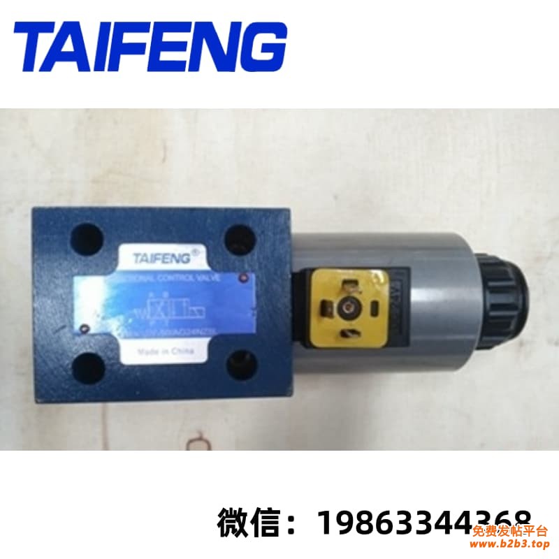 山东泰丰智能控制股份有限公司(原山东泰丰液压股份有限公司)生产的4we6型电磁换向阀是用电磁铁直接推动阀芯移位工作的小型方向控制阀,主要用于控制液体的通断和流动方向,也可以作为先导控制阀,以控制各种大通径的液压阀(电液换向阀或二通插装阀),实现对大功率液压阀的先导控制。其特点是:1.以直动式电磁铁操作方向滑阀作为标准类型;2.安装面符合DIN24340A型ISO4401和CETOP-RP121H;3.带可拆卸线圈的湿式直流获交流电磁铁;4.电磁铁可旋转90度;5.可以迅速而方便的更换电磁铁线圈而不引起液压系统漏油;6.可选的手动应急操作