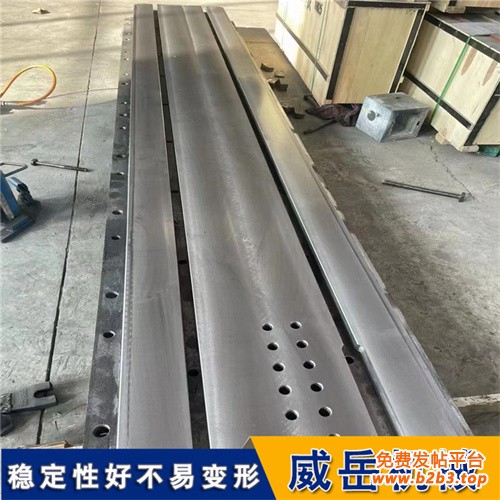 T型槽地轨也称地轨、地梁、地槽铁、基础槽铁、条形平台。 T型槽地轨用于大型设备的装配、试验、焊接和检验。根据设备的固定点来设计、拼接成铸梁平台,主要用于大型设备的装配、试验、焊接和检验。可代替铸铁基础平台使用。 T型槽地轨材质为优强度灰口铸铁HT200-250,工作面硬度为HB170-240,铸件经过两次人工退火600℃-700℃或自然时效2-3年,完全去除内应力,精度稳定,耐磨性能好。