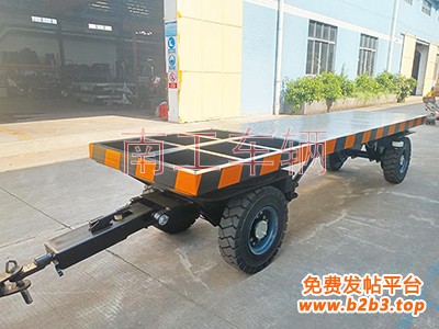 1.平板拖车承载能力8吨,宽度1.2米,长度为4.7米,高度为0.91米,平台主梁20号型钢,副梁12号型钢,板面为4MM花纹板;